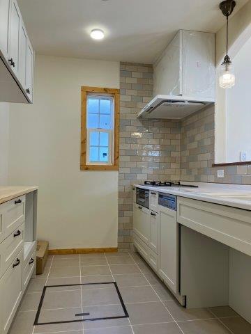●オレゴン州ポートランドから輸入したキャビネットドアを取り付けたキッチンカウンターと洗面化粧台