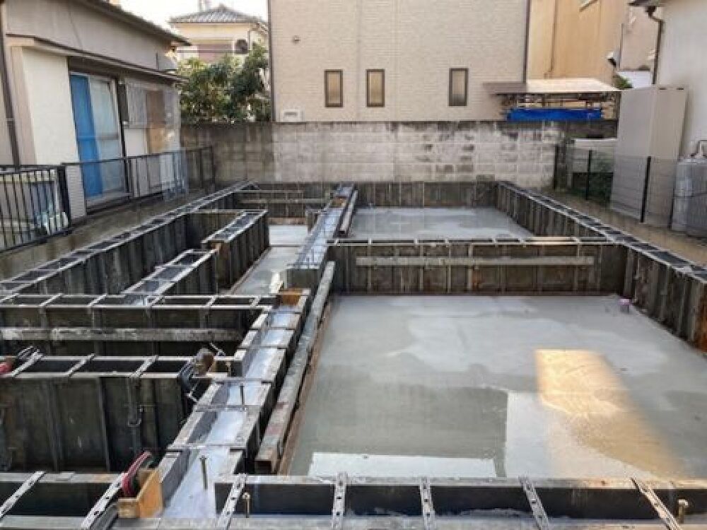 養生期間を取らずに型枠を解体するとコンクリートの強度が十分出ないことがあるので、多少基礎の出来上がりが遅れてもしっかり養生することが大切です。