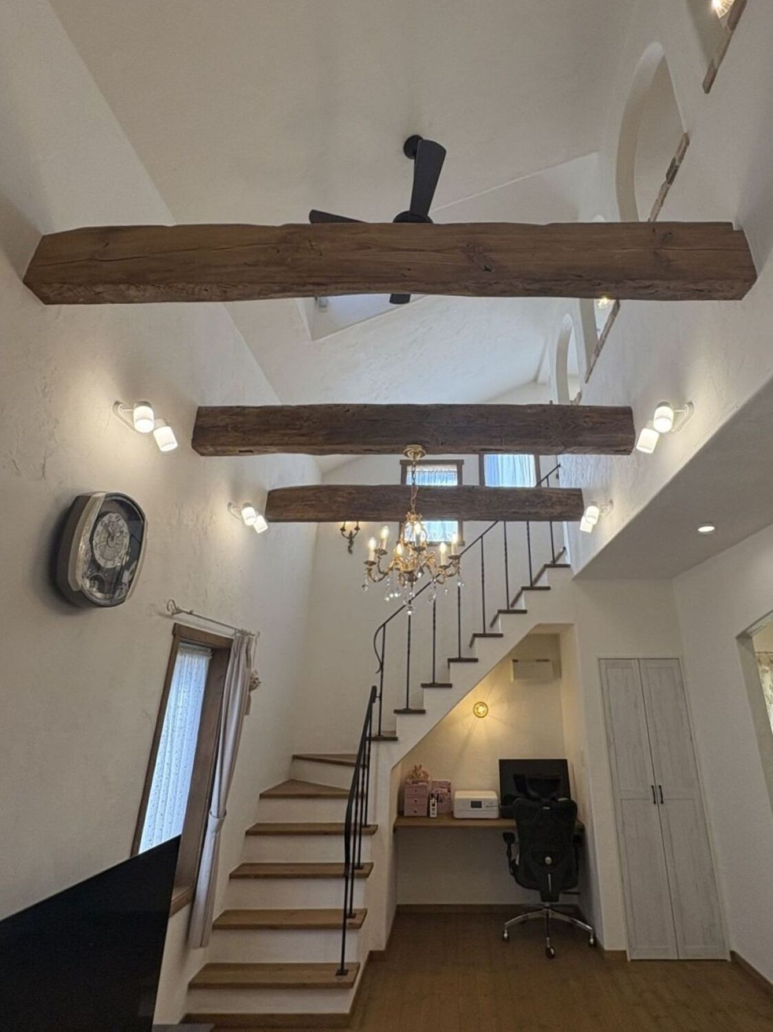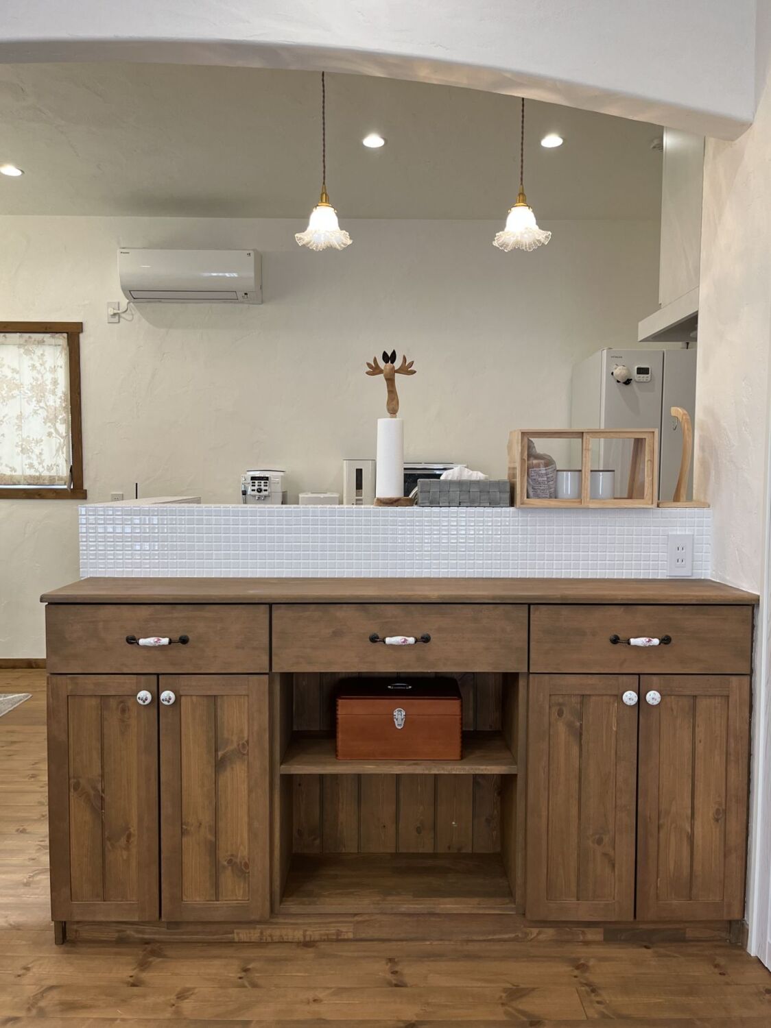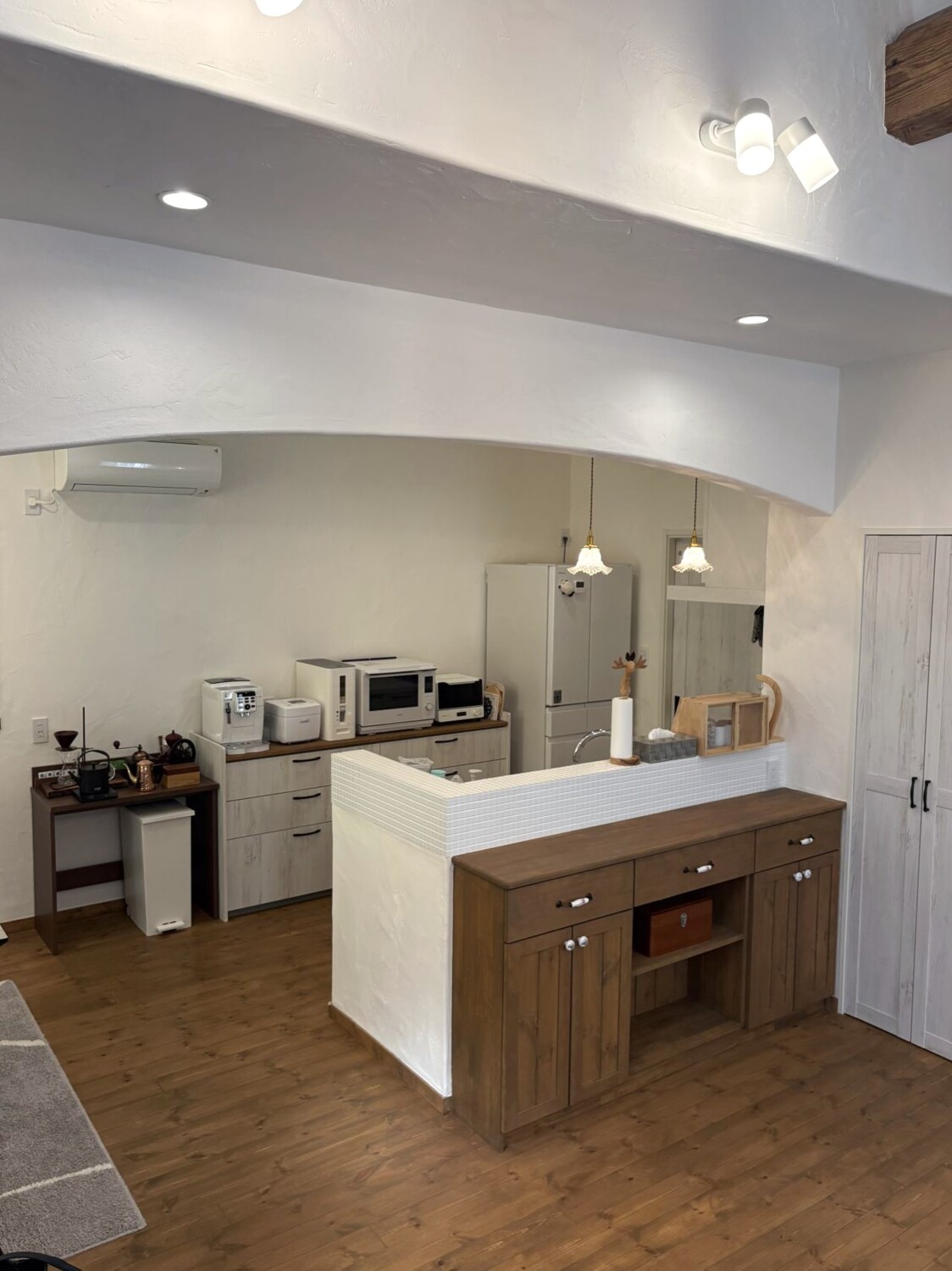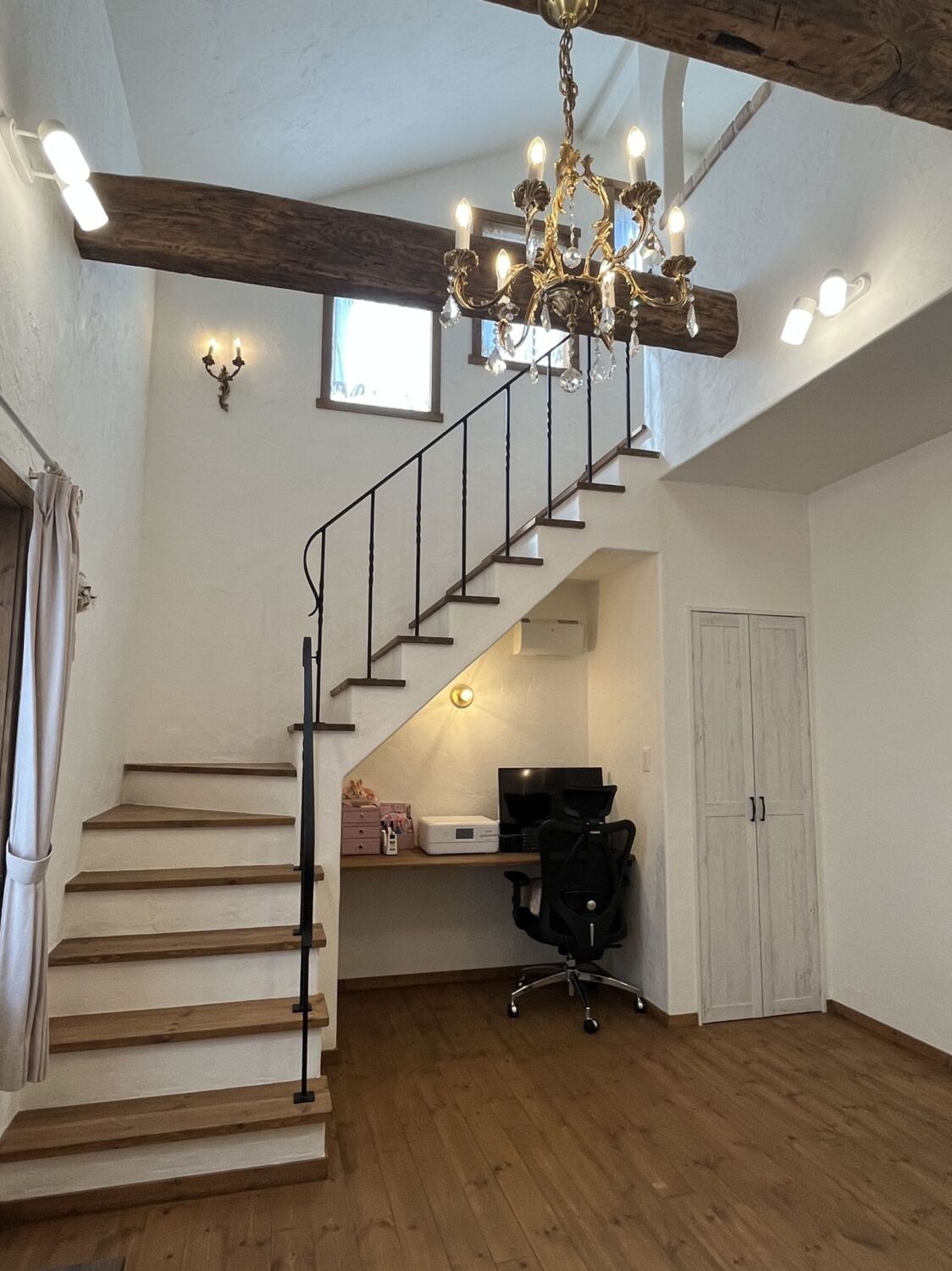 ホーム フォトギャラリー 地域別 すべて カフェ風の温かさが漂うアンティーク・クラシカルな心地良い家 カフェ風の温かさが漂うアンティーク・クラシカルな心地良い家 加古郡播磨町 K様邸 地域別|すべて 白い外壁に赤い洋瓦が似合うかわいい外観 アプローチはヴィンテージレンガで仕上げました。画像のみを表示全 30 枚中 1 枚目を表示Next ≫ 画像のみを表示全 30 枚中 2 枚目を表示≪ Prev|Next ≫ 玄関ホールにはテラコッタのタイルにしっくいの壁。 コーナーにニッチをつくりかわいらしさを演出、ルーバーの木製折戸に木製の窓枠がアンティーク感を出しています。画像のみを表示全 30 枚中 3 枚目を表示≪ Prev|Next ≫ 床には足触りの良いパインの無垢材を採用。 しっくいの壁は厚塗りで仕上げ凹凸を出すことで手作り感を出しました。画像のみを表示全 30 枚中 4 枚目を表示≪ Prev|Next ≫ リビングの吹き抜けには古木の化粧梁を取り付けました。 画像のみを表示全 30 枚中 5 枚目を表示≪ Prev|Next ≫ 無垢材の階段にしっくいの壁、手すりにはアイアンを採用しました。 吹き抜けの古材の化粧梁がクラシカルな雰囲気を出しています。画像のみを表示全 30 枚中 6 枚目を表示≪ Prev|Next ≫ キッチンの腰壁にモザイクタイルを使用しました。 収納カウンターの木材とタイルの組み合わせがかわいいです。画像のみを表示全 30 枚中 7 枚目を表示≪ Prev|Next ≫ 造作の収納カウンターは上部が引き出し、下部が開きドアと飾り棚。 色は少し濃い目の茶色でアンティーク感を出しています。画像のみを表示全 30 枚中 8 枚目を表示≪ Prev|Next ≫ 家電カウンターは白しか用意がないので、こちらでタモ材に取り替えて床の雰囲気に合わせました。画像のみを表示全 30 枚中 9 枚目を表示≪ Prev|Next ≫ キッチンスペースは広めにとりご夫婦一緒に料理作りを楽しめます。画像のみを表示全 30 枚中 10 枚目を表示≪ Prev|Next ≫ システムキッチンは白いアンティーク柄のキャビネットドアを採用しました。 扉は洗面室に行くドアです。 回遊動線で家事がしやすい間取りにしました。画像のみを表示全 30 枚中 11 枚目を表示≪ Prev|Next ≫ ダイニングから見たリビングはしっくいのアーチと化粧梁がかわいらしさとアンティーク感を出しています。画像のみを表示全 30 枚中 12 枚目を表示≪ Prev|Next ≫ ダイニングテーブルをキッチンの隣に配置して家事動線を楽にしました。画像のみを表示全 30 枚中 13 枚目を表示≪ Prev|Next ≫ しっくい壁に窓枠の無垢材ケーシングが良く似合っています。 ケーシングの形状は横勝ちにしてかわいらしさとアンティーク感を出しました。画像のみを表示全 30 枚中 14 枚目を表示≪ Prev|Next ≫ ダイニングテーブルの向こうにおしゃれなカーテン。 白いピアノにしっくい壁がよく合っています。画像のみを表示全 30 枚中 15 枚目を表示≪ Prev|Next ≫ キッチンの隣にダイニングテーブルを設置。 無垢材やしっくいがカフェのような空間を演出します。画像のみを表示全 30 枚中 16 枚目を表示≪ Prev|Next ≫ 洗面化粧台は既製品を購入し扉を付け替えました。 トールキャビネットとカウンターはケーアイリビングの工房で作成しました。画像のみを表示全 30 枚中 17 枚目を表示≪ Prev|Next ≫ 洗面化粧台とカウンターの幅いっぱいの鏡を取り付けました。 朝の込み合う時間も二人並んで身支度できます。 カウンターと鏡の間にはブルーのモザイクタイルを貼りました。画像のみを表示全 30 枚中 18 枚目を表示≪ Prev|Next ≫ 壁紙にはわんこの柄を採用。わんこ好きなご夫婦のお気に入りのクロスです。画像のみを表示全 30 枚中 19 枚目を表示≪ Prev|Next ≫ パイプスペース隣の飾り棚にはお客様が購入されたタンバリンタイルを貼りました。 かわいいアクセントになりました。画像のみを表示全 30 枚中 20 枚目を表示≪ Prev|Next ≫ 化粧梁の下の窓にはケーアイリビングの工房で作ったケーシングを取り付けました。 横勝ちのケーシングはあまり見かけないけれどかわいらしくかつクラシカルに仕上がりました。画像のみを表示全 30 枚中 21 枚目を表示≪ Prev|Next ≫ 無垢材の階段は一段一段手作りで組んだものです。 手作り感が出る階段はいつまでも飽きの来ない仕上がりになりました。画像のみを表示全 30 枚中 22 枚目を表示≪ Prev|Next ≫ リビング階段には窓を設置して光を取り込みました。 アイアンの手すりと化粧梁がアンティーク感を出しています。画像のみを表示全 30 枚中 23 枚目を表示≪ Prev|Next ≫ 吹き抜けは2階の廊下とつながっています。 アーチの腰壁の天端にはヴィンテージレンガを取り付けアーチの雰囲気に合わせました。画像のみを表示全 30 枚中 24 枚目を表示≪ Prev|Next ≫ しっくい壁の連続アーチにレンガの笠木、アーチの間にはおしゃれなブラケット照明。 とても素敵な空間です。画像のみを表示全 30 枚中 25 枚目を表示≪ Prev|Next ≫ 寝室から出るとおしゃれな廊下がお出迎え。 無駄なスペースだと思われがちな廊下は面積が少ない