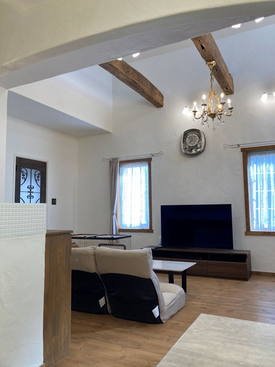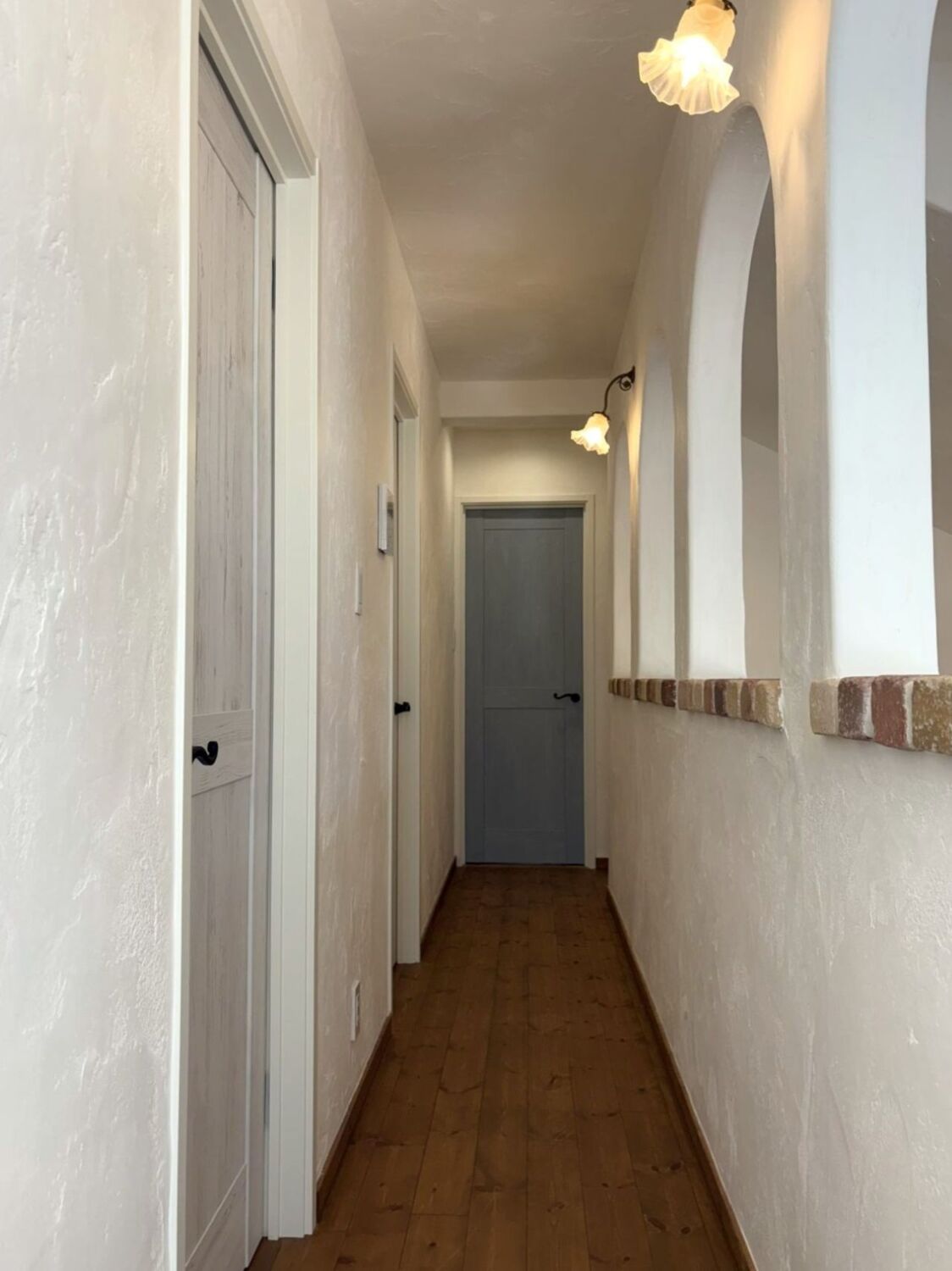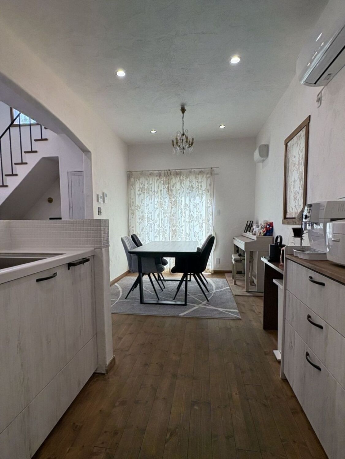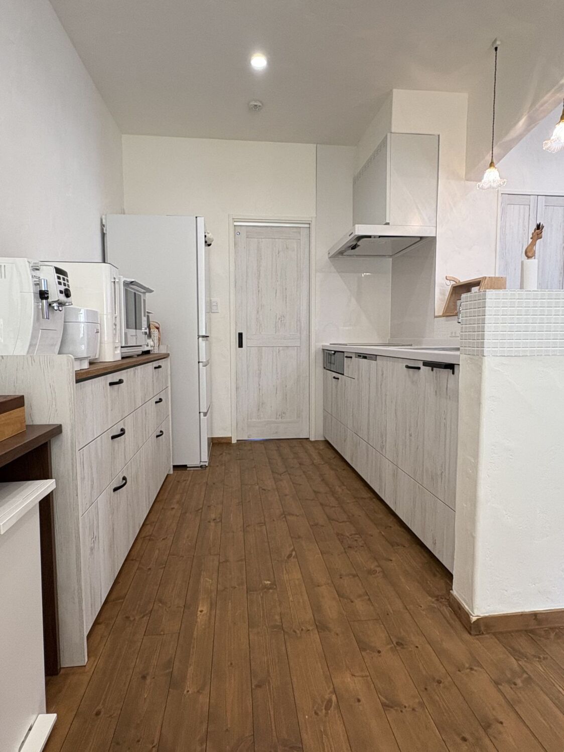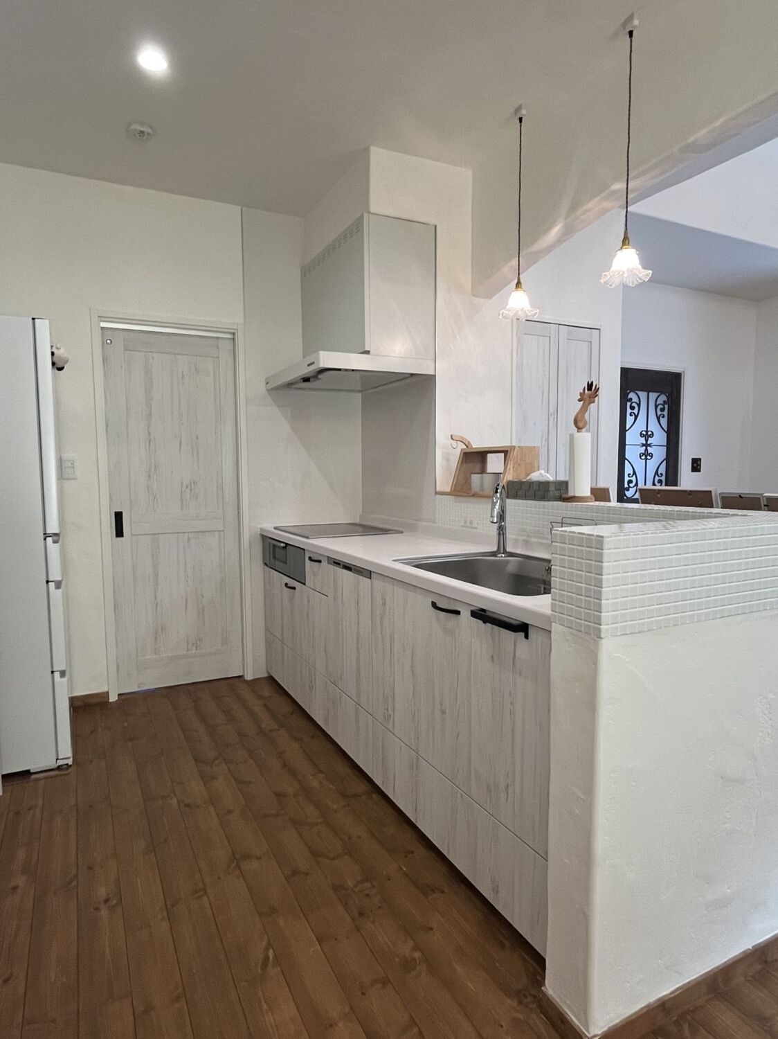 ホーム フォトギャラリー 地域別 すべて カフェ風の温かさが漂うアンティーク・クラシカルな心地良い家 カフェ風の温かさが漂うアンティーク・クラシカルな心地良い家 加古郡播磨町 K様邸 地域別|すべて 白い外壁に赤い洋瓦が似合うかわいい外観 アプローチはヴィンテージレンガで仕上げました。画像のみを表示全 30 枚中 1 枚目を表示Next ≫ 画像のみを表示全 30 枚中 2 枚目を表示≪ Prev|Next ≫ 玄関ホールにはテラコッタのタイルにしっくいの壁。 コーナーにニッチをつくりかわいらしさを演出、ルーバーの木製折戸に木製の窓枠がアンティーク感を出しています。画像のみを表示全 30 枚中 3 枚目を表示≪ Prev|Next ≫ 床には足触りの良いパインの無垢材を採用。 しっくいの壁は厚塗りで仕上げ凹凸を出すことで手作り感を出しました。画像のみを表示全 30 枚中 4 枚目を表示≪ Prev|Next ≫ リビングの吹き抜けには古木の化粧梁を取り付けました。 画像のみを表示全 30 枚中 5 枚目を表示≪ Prev|Next ≫ 無垢材の階段にしっくいの壁、手すりにはアイアンを採用しました。 吹き抜けの古材の化粧梁がクラシカルな雰囲気を出しています。画像のみを表示全 30 枚中 6 枚目を表示≪ Prev|Next ≫ キッチンの腰壁にモザイクタイルを使用しました。 収納カウンターの木材とタイルの組み合わせがかわいいです。画像のみを表示全 30 枚中 7 枚目を表示≪ Prev|Next ≫ 造作の収納カウンターは上部が引き出し、下部が開きドアと飾り棚。 色は少し濃い目の茶色でアンティーク感を出しています。画像のみを表示全 30 枚中 8 枚目を表示≪ Prev|Next ≫ 家電カウンターは白しか用意がないので、こちらでタモ材に取り替えて床の雰囲気に合わせました。画像のみを表示全 30 枚中 9 枚目を表示≪ Prev|Next ≫ キッチンスペースは広めにとりご夫婦一緒に料理作りを楽しめます。画像のみを表示全 30 枚中 10 枚目を表示≪ Prev|Next ≫ システムキッチンは白いアンティーク柄のキャビネットドアを採用しました。 扉は洗面室に行くドアです。 回遊動線で家事がしやすい間取りにしました。画像のみを表示全 30 枚中 11 枚目を表示≪ Prev|Next ≫ ダイニングから見たリビングはしっくいのアーチと化粧梁がかわいらしさとアンティーク感を出しています。画像のみを表示全 30 枚中 12 枚目を表示≪ Prev|Next ≫ ダイニングテーブルをキッチンの隣に配置して家事動線を楽にしました。画像のみを表示全 30 枚中 13 枚目を表示≪ Prev|Next ≫ しっくい壁に窓枠の無垢材ケーシングが良く似合っています。 ケーシングの形状は横勝ちにしてかわいらしさとアンティーク感を出しました。画像のみを表示全 30 枚中 14 枚目を表示≪ Prev|Next ≫ ダイニングテーブルの向こうにおしゃれなカーテン。 白いピアノにしっくい壁がよく合っています。画像のみを表示全 30 枚中 15 枚目を表示≪ Prev|Next ≫ キッチンの隣にダイニングテーブルを設置。 無垢材やしっくいがカフェのような空間を演出します。画像のみを表示全 30 枚中 16 枚目を表示≪ Prev|Next ≫ 洗面化粧台は既製品を購入し扉を付け替えました。 トールキャビネットとカウンターはケーアイリビングの工房で作成しました。画像のみを表示全 30 枚中 17 枚目を表示≪ Prev|Next ≫ 洗面化粧台とカウンターの幅いっぱいの鏡を取り付けました。 朝の込み合う時間も二人並んで身支度できます。 カウンターと鏡の間にはブルーのモザイクタイルを貼りました。画像のみを表示全 30 枚中 18 枚目を表示≪ Prev|Next ≫ 壁紙にはわんこの柄を採用。わんこ好きなご夫婦のお気に入りのクロスです。画像のみを表示全 30 枚中 19 枚目を表示≪ Prev|Next ≫ パイプスペース隣の飾り棚にはお客様が購入されたタンバリンタイルを貼りました。 かわいいアクセントになりました。画像のみを表示全 30 枚中 20 枚目を表示≪ Prev|Next ≫ 化粧梁の下の窓にはケーアイリビングの工房で作ったケーシングを取り付けました。 横勝ちのケーシングはあまり見かけないけれどかわいらしくかつクラシカルに仕上がりました。画像のみを表示全 30 枚中 21 枚目を表示≪ Prev|Next ≫ 無垢材の階段は一段一段手作りで組んだものです。 手作り感が出る階段はいつまでも飽きの来ない仕上がりになりました。画像のみを表示全 30 枚中 22 枚目を表示≪ Prev|Next ≫ リビング階段には窓を設置して光を取り込みました。 アイアンの手すりと化粧梁がアンティーク感を出しています。画像のみを表示全 30 枚中 23 枚目を表示≪ Prev|Next ≫ 吹き抜けは2階の廊下とつながっています。 アーチの腰壁の天端にはヴィンテージレンガを取り付けアーチの雰囲気に合わせました。画像のみを表示全 30 枚中 24 枚目を表示≪ Prev|Next ≫ しっくい壁の連続アーチにレンガの笠木、アーチの間にはおしゃれなブラケット照明。 とても素敵な空間です。画像のみを表示全 30 枚中 25 枚目を表示≪ Prev|Next ≫ 寝室から出るとおしゃれな廊下がお出迎え。 無駄なスペースだと思われがちな廊下は面積が少ない