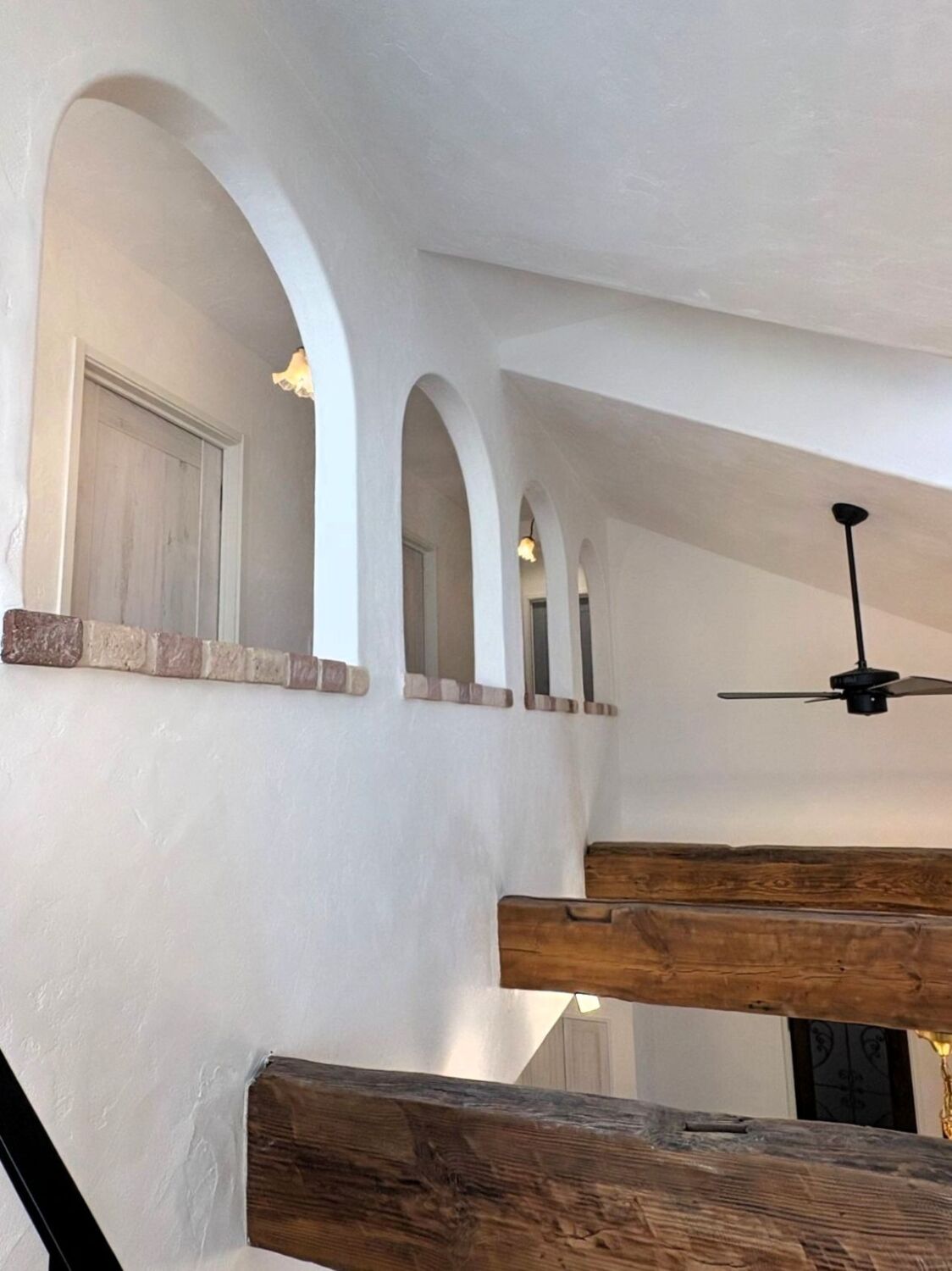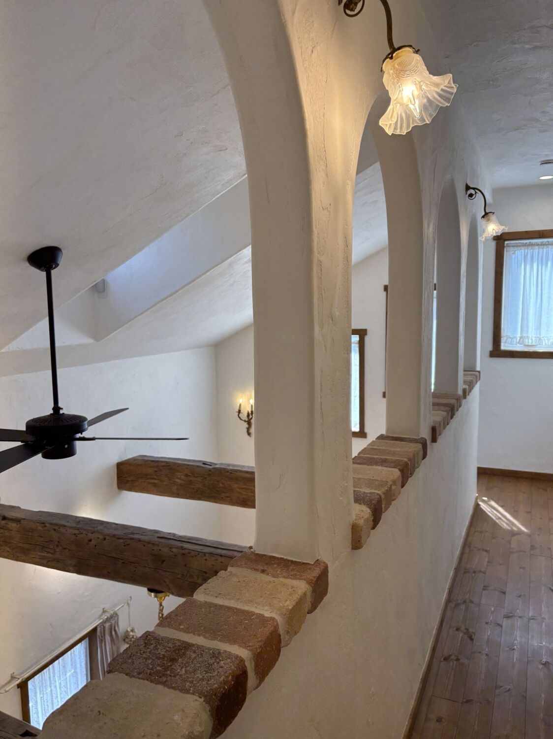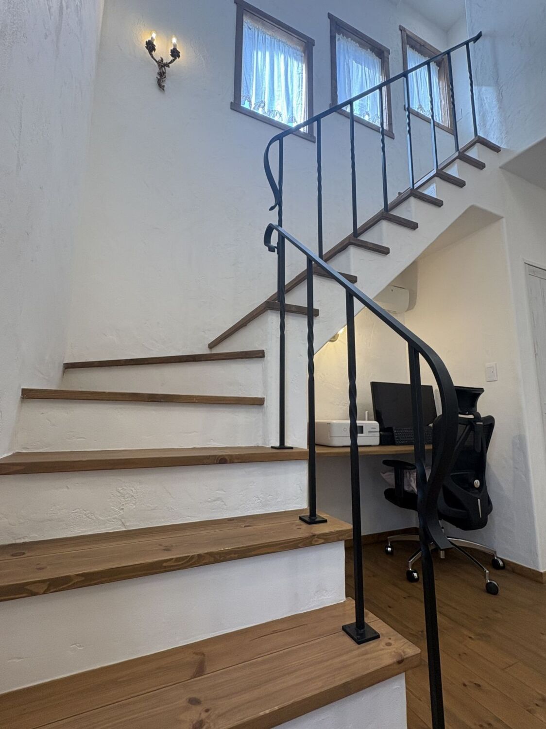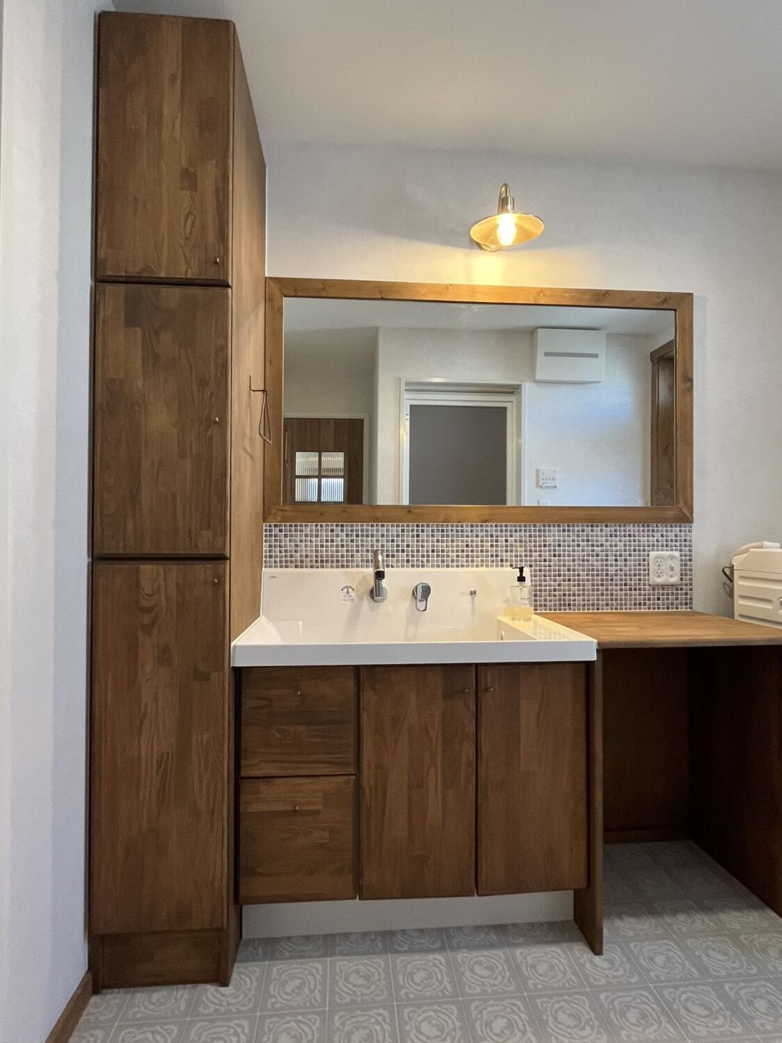 ホーム フォトギャラリー 地域別 すべて カフェ風の温かさが漂うアンティーク・クラシカルな心地良い家 カフェ風の温かさが漂うアンティーク・クラシカルな心地良い家 加古郡播磨町 K様邸 地域別|すべて 白い外壁に赤い洋瓦が似合うかわいい外観 アプローチはヴィンテージレンガで仕上げました。画像のみを表示全 30 枚中 1 枚目を表示Next ≫ 画像のみを表示全 30 枚中 2 枚目を表示≪ Prev|Next ≫ 玄関ホールにはテラコッタのタイルにしっくいの壁。 コーナーにニッチをつくりかわいらしさを演出、ルーバーの木製折戸に木製の窓枠がアンティーク感を出しています。画像のみを表示全 30 枚中 3 枚目を表示≪ Prev|Next ≫ 床には足触りの良いパインの無垢材を採用。 しっくいの壁は厚塗りで仕上げ凹凸を出すことで手作り感を出しました。画像のみを表示全 30 枚中 4 枚目を表示≪ Prev|Next ≫ リビングの吹き抜けには古木の化粧梁を取り付けました。 画像のみを表示全 30 枚中 5 枚目を表示≪ Prev|Next ≫ 無垢材の階段にしっくいの壁、手すりにはアイアンを採用しました。 吹き抜けの古材の化粧梁がクラシカルな雰囲気を出しています。画像のみを表示全 30 枚中 6 枚目を表示≪ Prev|Next ≫ キッチンの腰壁にモザイクタイルを使用しました。 収納カウンターの木材とタイルの組み合わせがかわいいです。画像のみを表示全 30 枚中 7 枚目を表示≪ Prev|Next ≫ 造作の収納カウンターは上部が引き出し、下部が開きドアと飾り棚。 色は少し濃い目の茶色でアンティーク感を出しています。画像のみを表示全 30 枚中 8 枚目を表示≪ Prev|Next ≫ 家電カウンターは白しか用意がないので、こちらでタモ材に取り替えて床の雰囲気に合わせました。画像のみを表示全 30 枚中 9 枚目を表示≪ Prev|Next ≫ キッチンスペースは広めにとりご夫婦一緒に料理作りを楽しめます。画像のみを表示全 30 枚中 10 枚目を表示≪ Prev|Next ≫ システムキッチンは白いアンティーク柄のキャビネットドアを採用しました。 扉は洗面室に行くドアです。 回遊動線で家事がしやすい間取りにしました。画像のみを表示全 30 枚中 11 枚目を表示≪ Prev|Next ≫ ダイニングから見たリビングはしっくいのアーチと化粧梁がかわいらしさとアンティーク感を出しています。画像のみを表示全 30 枚中 12 枚目を表示≪ Prev|Next ≫ ダイニングテーブルをキッチンの隣に配置して家事動線を楽にしました。画像のみを表示全 30 枚中 13 枚目を表示≪ Prev|Next ≫ しっくい壁に窓枠の無垢材ケーシングが良く似合っています。 ケーシングの形状は横勝ちにしてかわいらしさとアンティーク感を出しました。画像のみを表示全 30 枚中 14 枚目を表示≪ Prev|Next ≫ ダイニングテーブルの向こうにおしゃれなカーテン。 白いピアノにしっくい壁がよく合っています。画像のみを表示全 30 枚中 15 枚目を表示≪ Prev|Next ≫ キッチンの隣にダイニングテーブルを設置。 無垢材やしっくいがカフェのような空間を演出します。画像のみを表示全 30 枚中 16 枚目を表示≪ Prev|Next ≫ 洗面化粧台は既製品を購入し扉を付け替えました。 トールキャビネットとカウンターはケーアイリビングの工房で作成しました。画像のみを表示全 30 枚中 17 枚目を表示≪ Prev|Next ≫ 洗面化粧台とカウンターの幅いっぱいの鏡を取り付けました。 朝の込み合う時間も二人並んで身支度できます。 カウンターと鏡の間にはブルーのモザイクタイルを貼りました。画像のみを表示全 30 枚中 18 枚目を表示≪ Prev|Next ≫ 壁紙にはわんこの柄を採用。わんこ好きなご夫婦のお気に入りのクロスです。画像のみを表示全 30 枚中 19 枚目を表示≪ Prev|Next ≫ パイプスペース隣の飾り棚にはお客様が購入されたタンバリンタイルを貼りました。 かわいいアクセントになりました。画像のみを表示全 30 枚中 20 枚目を表示≪ Prev|Next ≫ 化粧梁の下の窓にはケーアイリビングの工房で作ったケーシングを取り付けました。 横勝ちのケーシングはあまり見かけないけれどかわいらしくかつクラシカルに仕上がりました。画像のみを表示全 30 枚中 21 枚目を表示≪ Prev|Next ≫ 無垢材の階段は一段一段手作りで組んだものです。 手作り感が出る階段はいつまでも飽きの来ない仕上がりになりました。画像のみを表示全 30 枚中 22 枚目を表示≪ Prev|Next ≫ リビング階段には窓を設置して光を取り込みました。 アイアンの手すりと化粧梁がアンティーク感を出しています。画像のみを表示全 30 枚中 23 枚目を表示≪ Prev|Next ≫ 吹き抜けは2階の廊下とつながっています。 アーチの腰壁の天端にはヴィンテージレンガを取り付けアーチの雰囲気に合わせました。画像のみを表示全 30 枚中 24 枚目を表示≪ Prev|Next ≫ しっくい壁の連続アーチにレンガの笠木、アーチの間にはおしゃれなブラケット照明。 とても素敵な空間です。画像のみを表示全 30 枚中 25 枚目を表示≪ Prev|Next ≫ 寝室から出るとおしゃれな廊下がお出迎え。 無駄なスペースだと思われがちな廊下は面積が少ない