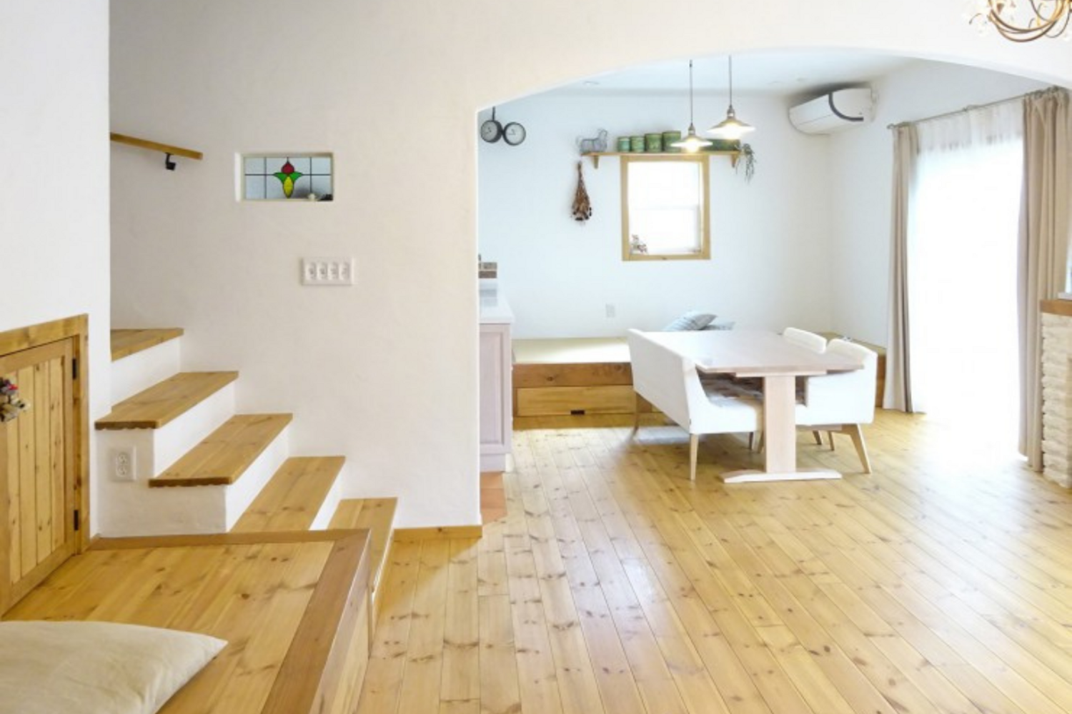 ホーム フォトギャラリー 地域別 すべて カバードポーチがおしゃれなラップサイディングの家 カバードポーチがおしゃれなラップサイディングの家 猪名川町 T様邸 地域別|すべて ラップサイディングの外観。木製のフェンスや階段、広いフロントポーチが素朴な温もりを感じさせます。 広いフロントポーチが、素朴な温もりを感じさせます。画像のみを表示全 13 枚中 1 枚目を表示Next ≫ 玄関からもシューズクロークからも部屋にはいれる2ウェイ動線。ステンドグラスやニッチを付けて優しい表情にしました。画像のみを表示全 13 枚中 2 枚目を表示≪ Prev|Next ≫ キッチンは框付きの木のキャビネットに人工大理石の天板。収納スペース付きの小上がりの畳スペースはゴロっとくつろげ、ベンチ代わりにもなって重宝します。画像のみを表示全 13 枚中 3 枚目を表示≪ Prev|Next ≫ 階段下の壁に棚を設けてたり、小上がりに引き出しを付けて収納場所を確保。省スペースを有効利用しました。画像のみを表示全 13 枚中 4 枚目を表示≪ Prev|Next ≫ 外からの光が差し込む明るいダイニング。床はパイン材に床暖房を設置。四季を通して快適に過ごせます。画像のみを表示全 13 枚中 5 枚目を表示≪ Prev|Next ≫ 輸入扉を使った造作キッチン。ダイニング側をホワイトに塗装しました。壁に貼ったイギリスのアンティークレンガがアクセントになっています。画像のみを表示全 13 枚中 6 枚目を表示≪ Prev|Next ≫ 廊下の突きあたりに本棚を設けるなど、スペースを無駄なく活用!画像のみを表示全 13 枚中 7 枚目を表示≪ Prev|Next ≫ たっぷり収納がある造作洗面化粧台。モザイクタイルや陶器の洗面ボウル、造作鏡に木製ドア、床のタイルなど自然素材で統一しました。画像のみを表示全 13 枚中 8 枚目を表示≪ Prev|Next ≫ ロフトのある子供部屋。ベッドカバーやシャンデリアなど子供さんの好きなピンクでまとめました。画像のみを表示全 13 枚中 9 枚目を表示≪ Prev|Next ≫ こちらもロフトのある子供部屋です。ベッド横にニッチを設けたので、物を置くことが出来ます。画像のみを表示全 13 枚中 10 枚目を表示≪ Prev|Next ≫ ご主人の趣味の自転車置き場。横には手洗い用のシンクを設けました。画像のみを表示全 13 枚中 11 枚目を表示≪ Prev|Next ≫ 玄関を挟んで左にシューズクローク、右には自転車置き場。使い勝手がとてもいいです♪画像のみを表示全 13 枚中 12 枚目を表示≪ Prev|Next ≫ リビングから玄関に広がるウッドデッキ。バーベキューをしたり、愛犬と遊んだり、お家時間が楽しめます。画像のみを表示全 13 枚中 13 枚目を表示≪ Prev ラップサイディングが北米の香り漂わせるカバードポーチがおしゃれな外観のお家です。しっくいに囲まれた室内はとてもさわやか。造作キッチンや洗面台、そして家具など手作り感あふれる素敵なお家です。 一覧へ戻る 地域別 タイプ別 パーツ別 すべて 加古郡播磨町 加古郡 明石市 加古川市 神戸市 高砂市 小野市 その他の地域 すべて 新築 リノベーション・リフォーム 平屋 2階建て 3階建て 吹き抜けのある家 インナーガレージのある家 薪ストーブのある家 ペットのいる家 店舗付き住宅 店舗 すべて リビング キッチン ダイニング 洗面室・洗面台 玄関 トイレ 廊下 和室 吹き抜け・天井 階段 照明・あかり ニッチ・飾り棚・ステンドグラス 造作家具 外構・庭・ウッドデッキetc… お家・外観 居室・子ども部屋 ワークスペース・書斎