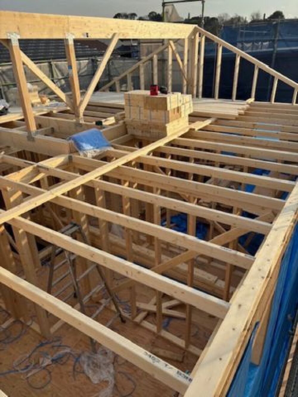 2階の床組みが完了しました。