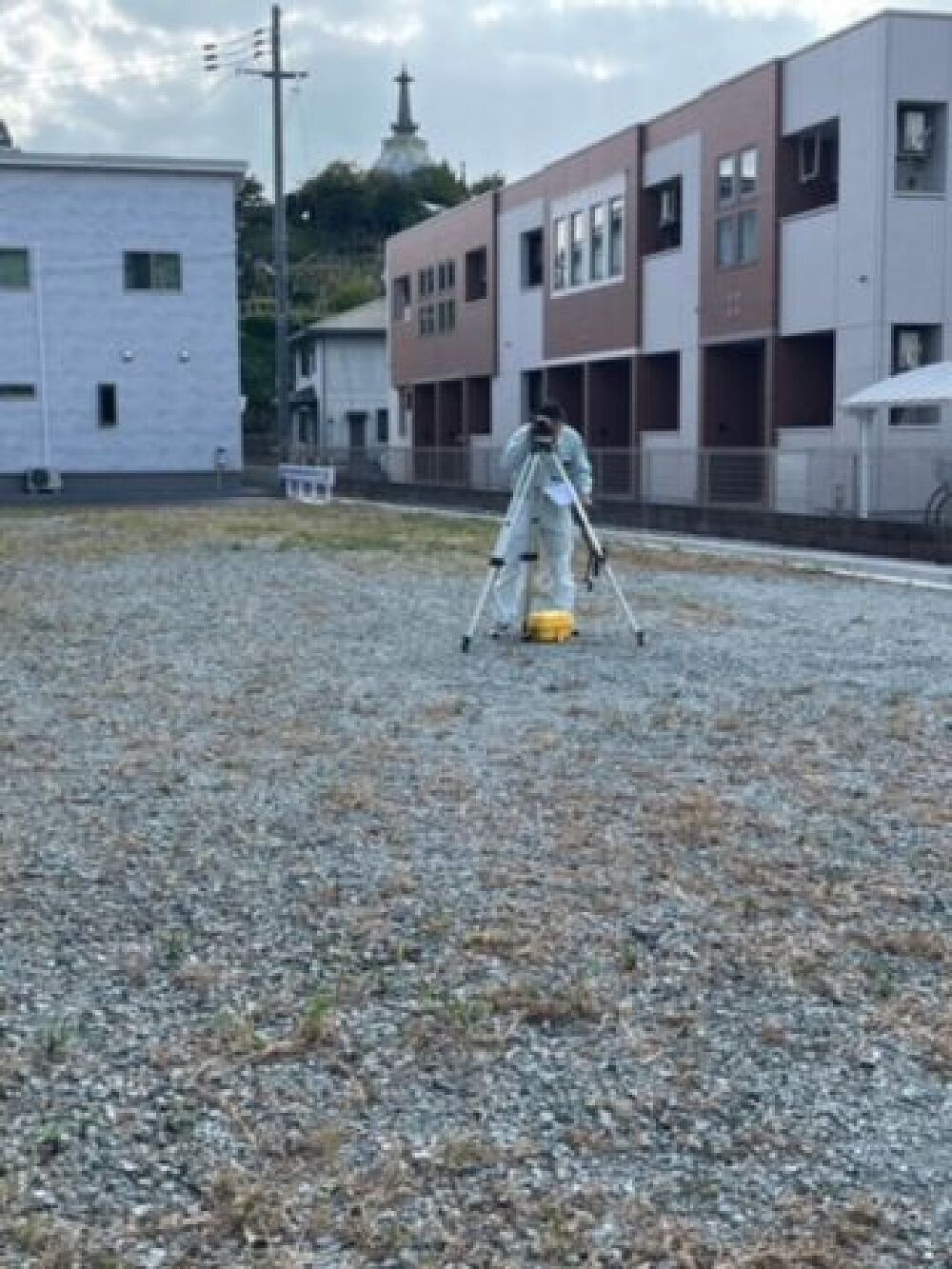 着工前の高低差を測る作業を行いました。