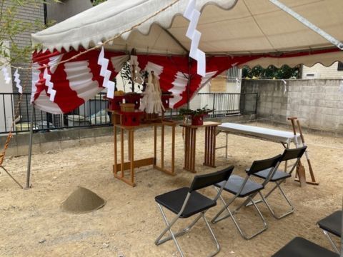 外構のコンクリートの打設を行うためのすきとり工事を行いました。